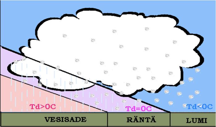 Karkeasti ottaen voidaan todeta, että kun ilman kastepistelämpötila on nollan alapuolella, sade tulee lumena. Kun kastepistelämpötila on lähellä nollaa, sade on räntää ja kun se kohoaa nollan yläpuolelle, sade on todennäköisemmin jo vettä.