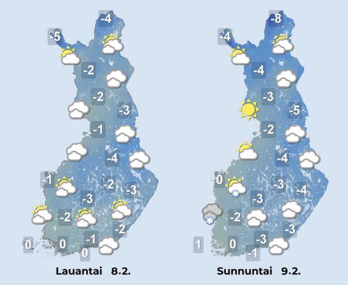 7.2.2025 kello 23.40: Päivitetty perjantain korkeinta lämpötilaa.