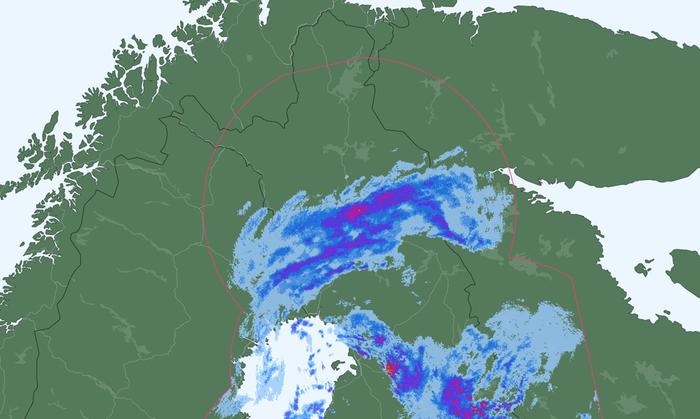 Etelään päin tultaessa lämpötila kohoaa nopeasti nollan yläpuolelle, esimerkiksi Oulun korkeudella on useita plusasteita ja sateet tulevat vetenä.