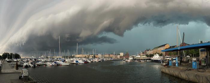 Pohjoisen Itämeren ja Viron yllä kehittyi keskiviiikkona puoleltapäivin erittäin voimakas ukkospilvijono, joka pyyhkäisi Uudenmaan yli klo 14–15 maissa. Helsingin edustalla merialueella (Helsingin majakka) havaittiin 29,7 m/s puuskatuuli ja Kirkkonummella 29 m/s. Ukkossysteemi jatkaa matkaansa kohti koillista.